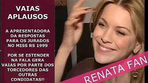 Ela era advogada e se formou jornalista. Encontrei esta foto de renata fan durante o miss universo 1999 e adorei! Já no miss universo, entre 99 candidatas do mundo inteiro, renata conquistou o décimo. Renata bonfiglio fan (born july 5, 1977 in santo ângelo, rio grande do sul, brazil) is a lawyer and journalist student who represented her country in the miss in the miss universe 1999 pageant, which took place in may 26, 2006 in chaguaramas, trinidad and tobago, fan placed on the top 20. Renata fan considera que as pessoas não têm noção do quanto que é difícil ganhar uma coroa de miss universo.